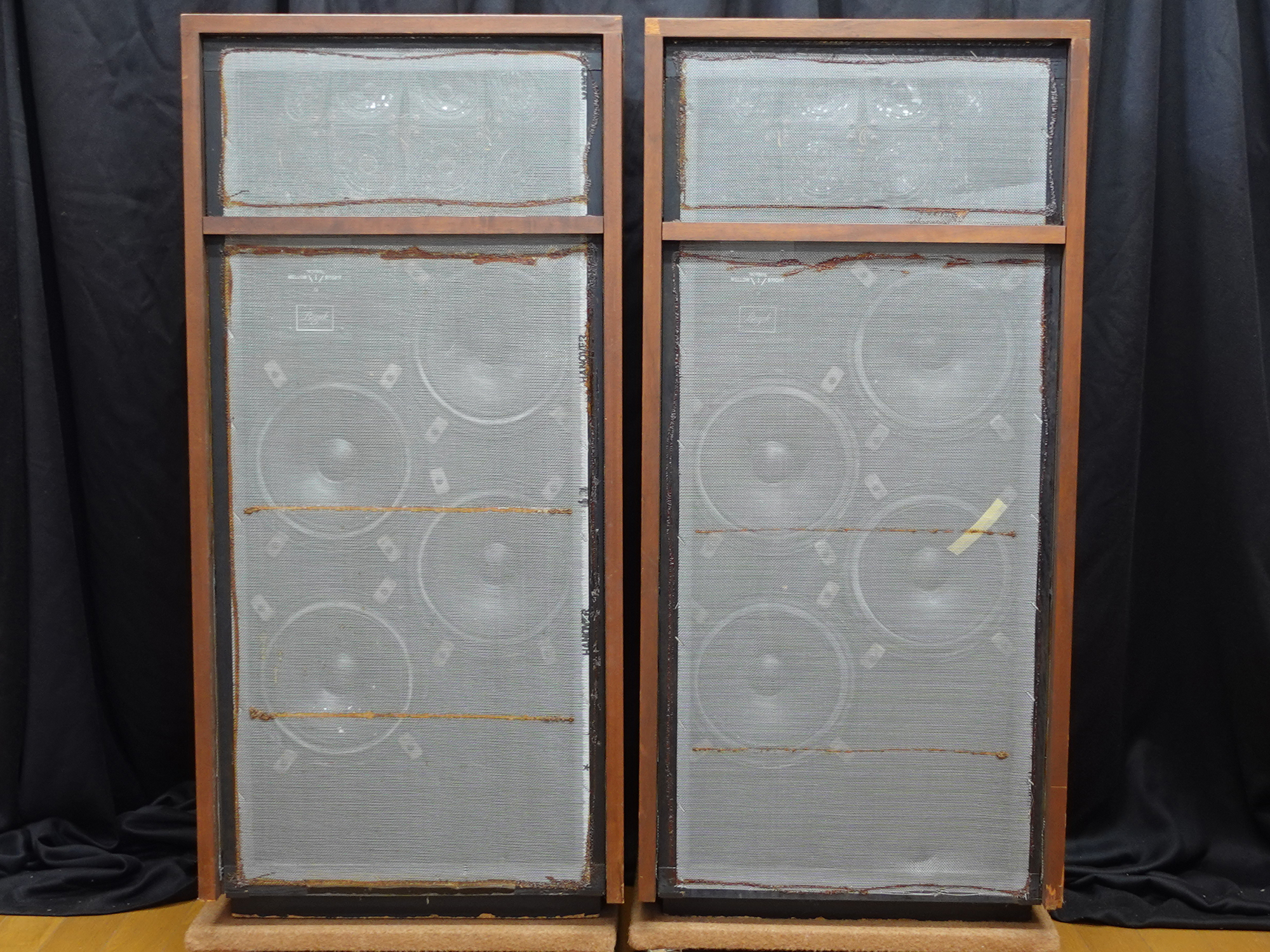 黄色のマスキングテープで印をしているウーハーユニットから音が出ません。